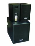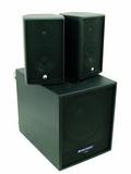 - Zwei-Wege-Satellitensystem bestehend aus zwei Tops und einem Subwoofer